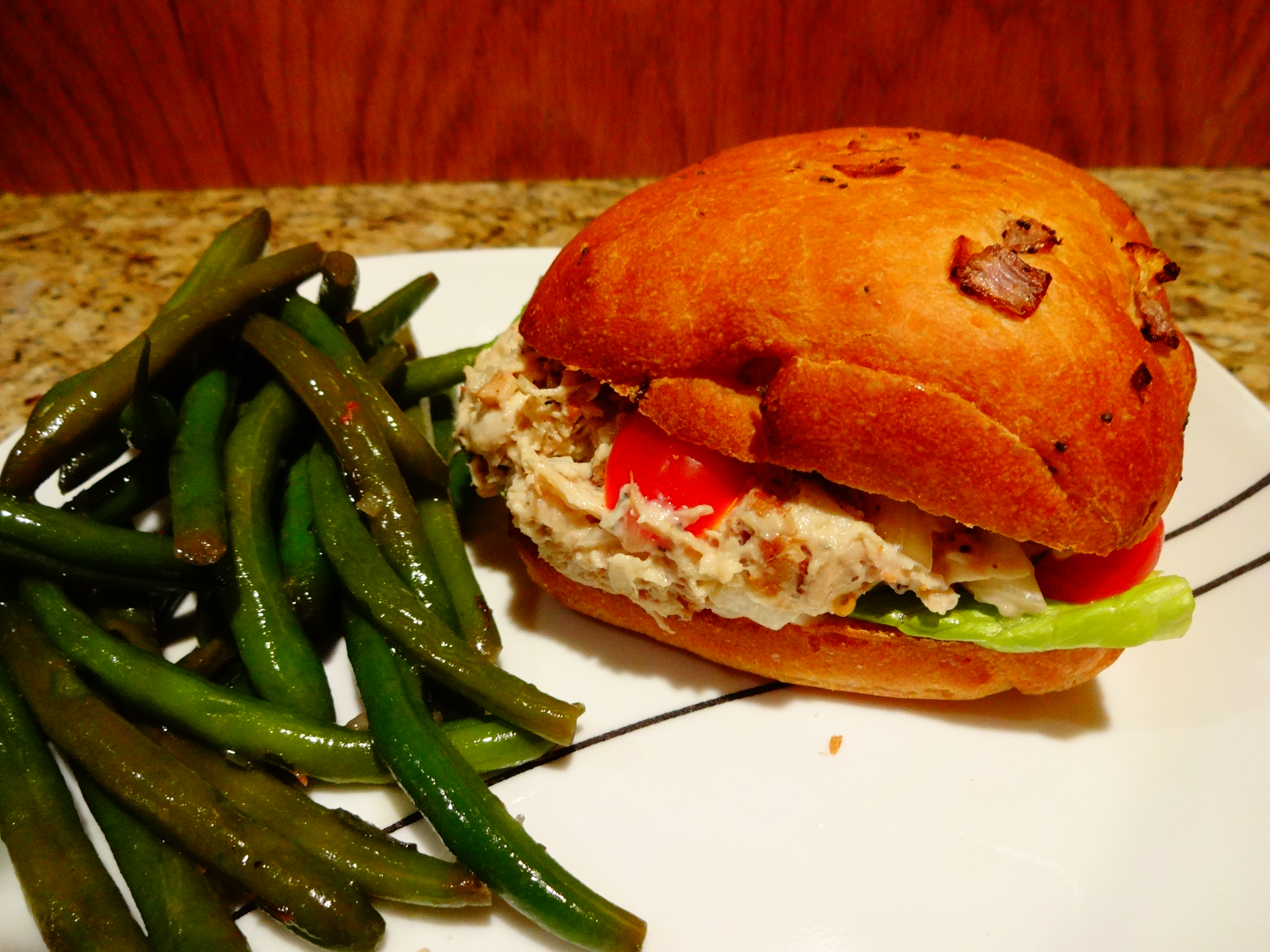 Beautifully simple dish but really the perfect Chicken Salad.. so creamy and rich and the smoky bacon balances so well.. the roll was also delicious and I loved the pairing of the sandwich with the green beans instead of fries or chips. Fantastic!