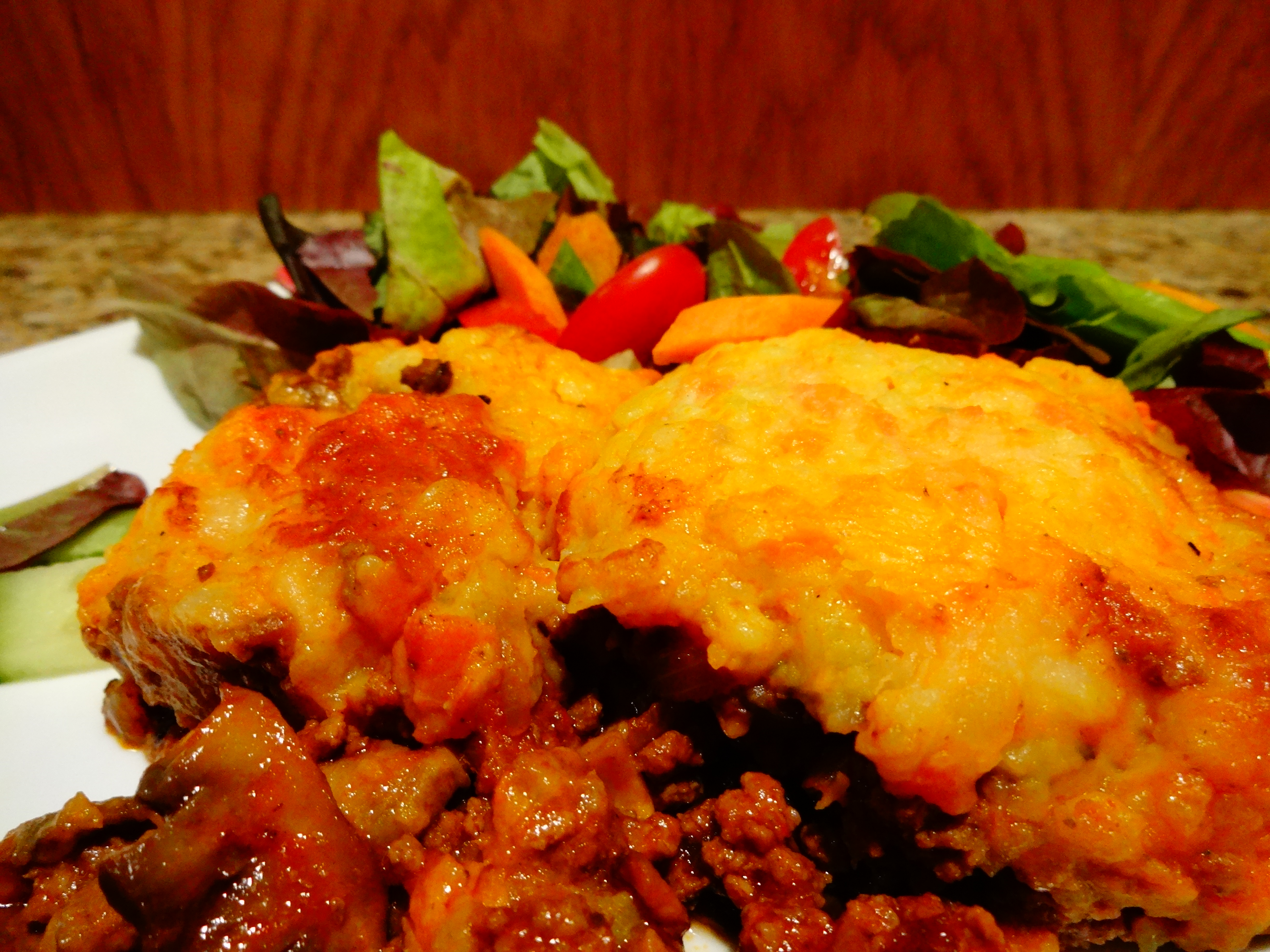 Cottage Pie with Veggie Mash and Red Lead Lettuce Salad