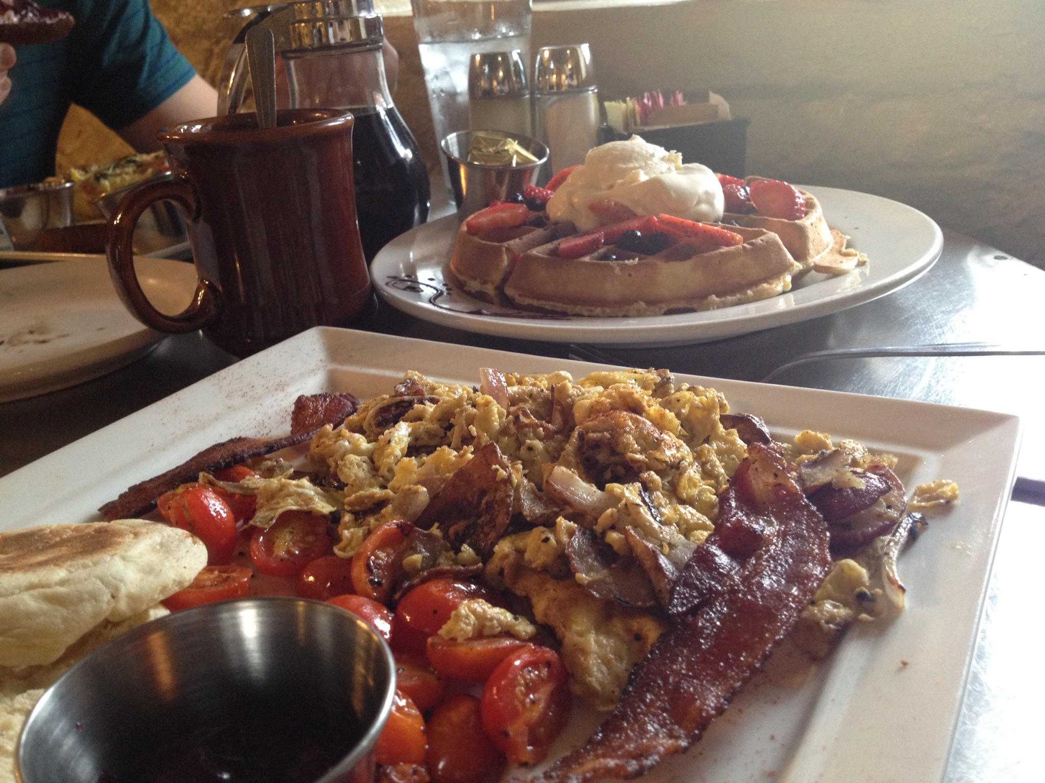 the bitterness and richness of the coffee mixed with the sweet and savory breakfast sampler, waffle, and fruit is quite a way to start any day. Yes, this is very simple stuff one might suggest, but everything is done with such care and precision. That is key I suppose. Further, you are not getting tiny portions either, so don’t worry about that.