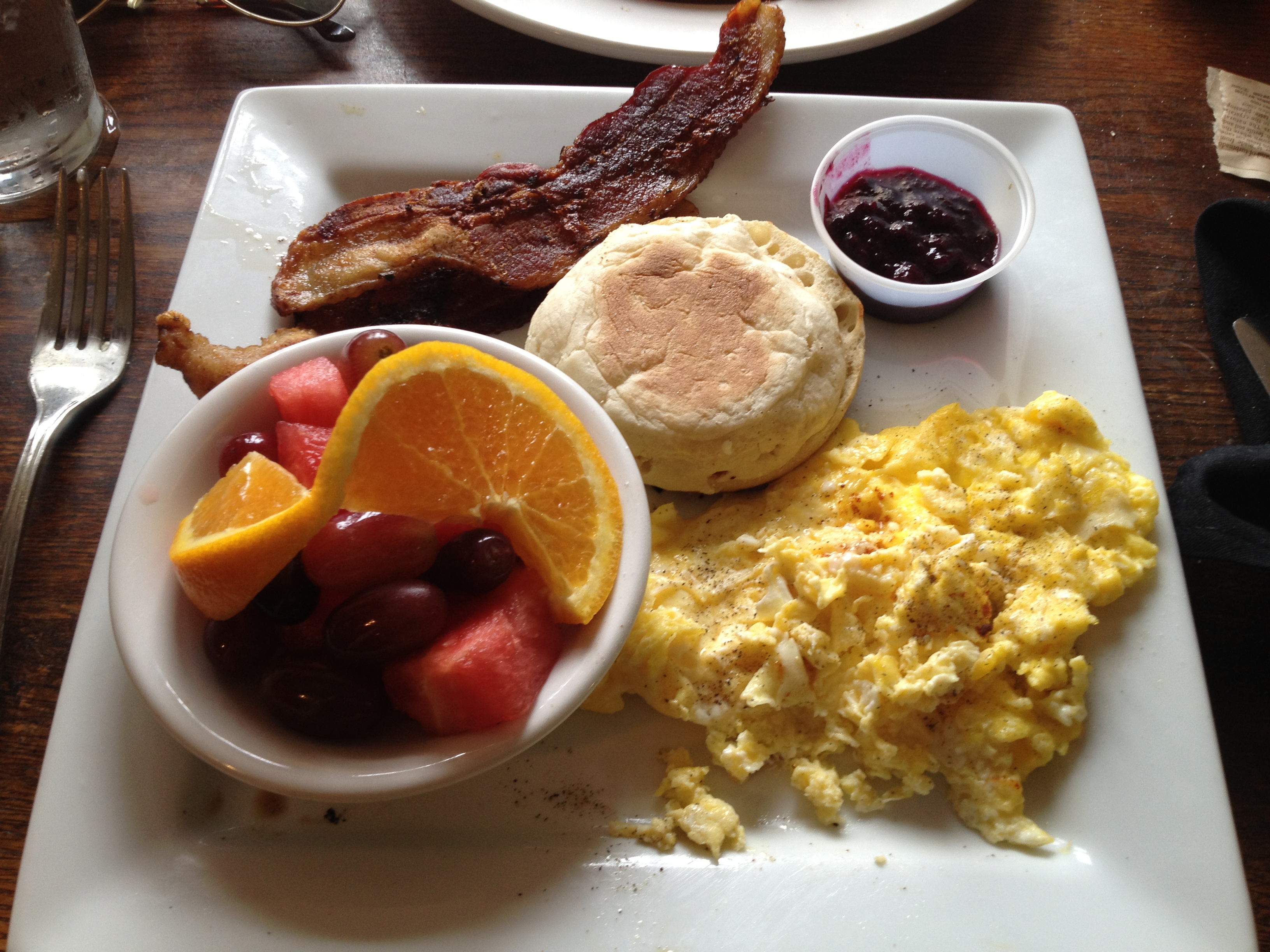 I always like to eat fruit with breakfast and this selection of fruit in particular complements the already fantastic breakfast items accompanying it. Diners have a choice of toast, an English muffin, or a bagel. I recommend the English muffin mostly for the fact that the homemade blueberry jam is really really good.