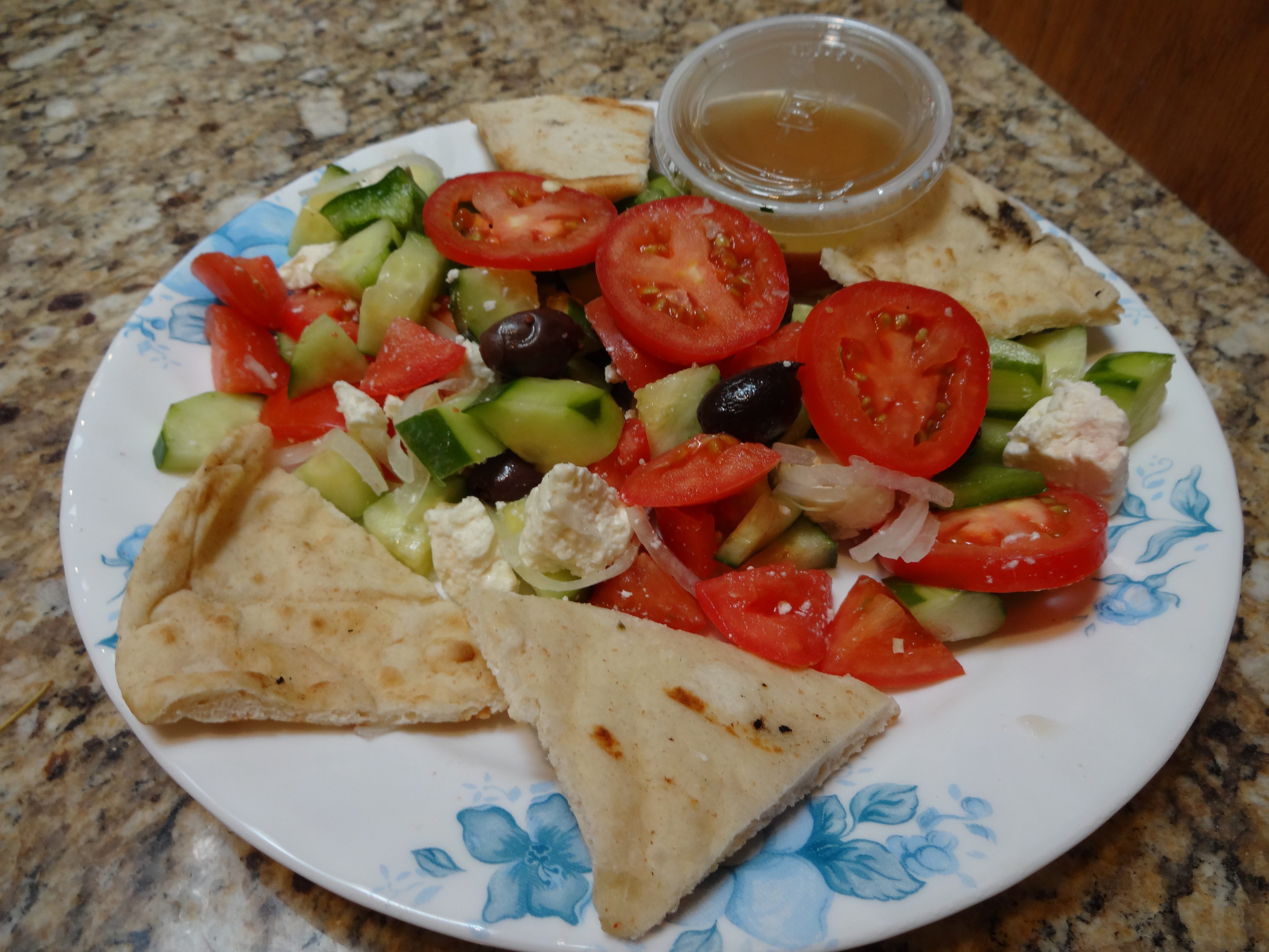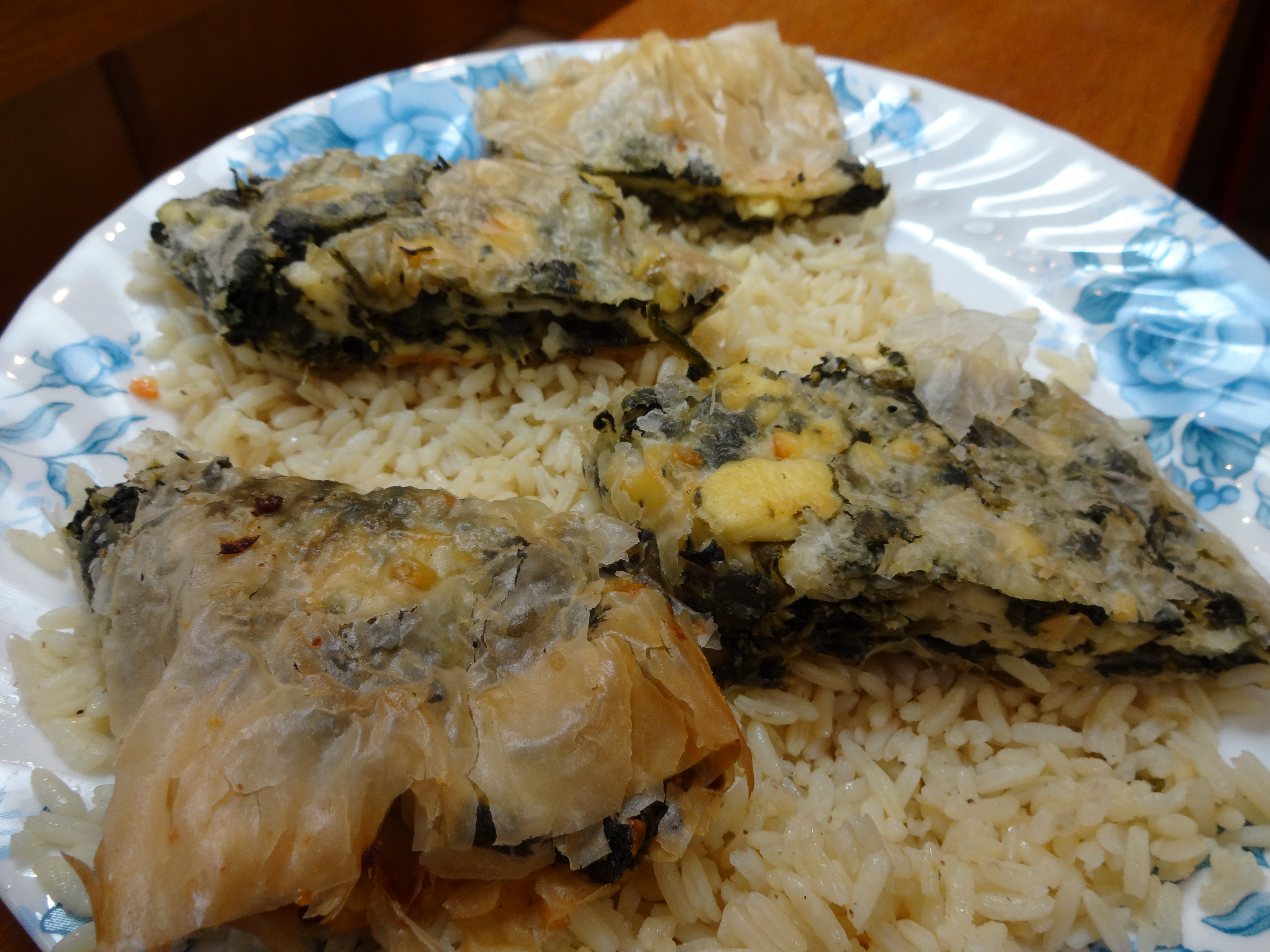 The vegetables are always fresh and never wilted and the cucumber yogurt is pretty amazing and goes with everything.The spinach pie was so light, flaky, and savory.